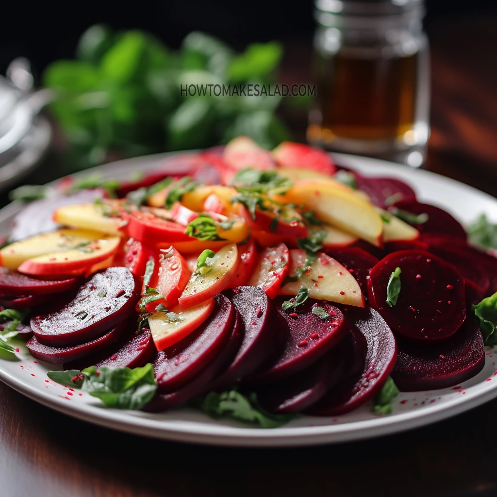 تتميز "سلطة التفاح والبنجر" بطعم منعش وتمتاز بطعم الحلاوة الطبيعية للتفاح مع نكهة البنجر الخفيفة المرة قليلاً وهي وجبة خفيفة صحية ومغذية تحتوي على مزيج رائع من النكهات والفوائد مثل تعزيز صحة القلب، يساعد على الهضم، خفض مستويات الكولسترول، يساعد على الشبع، وبها العديد من الفيتامينات والمعادن المهمة مثل فيتامين C، البيتا كاروتين، البوتاسيوم، الفولات، والحديد.