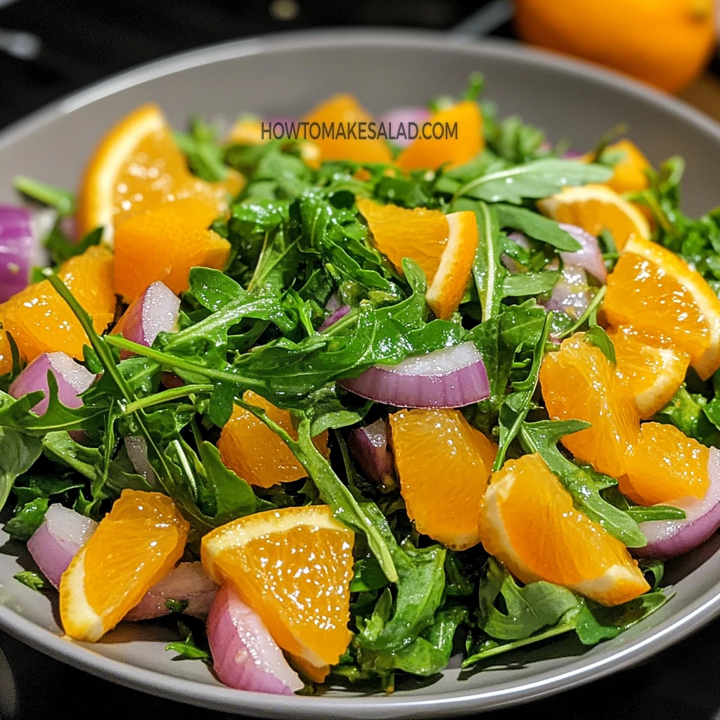 تعتبر "سلطة الجرجير والبرتقال" من أسرع الوصفات وأكثر الاكلات المحفزة للمناعة بشكل كبير وفعال والتي يمكن إعدادها بمكونات من المنزل بمرونة كبيرة حتى في وقت الإنشغال نظراً لخطواتها البسيطة كما أن لها فوائد عظيمة فهي من أكثر المصادر الغذائية التي تحتوي على مضادات الأكسدة نظراً لما يدخل في مكونات تلك الوجبة مما يجعلها صحية ومفيدة للحفاظ على صحة وحيوية الجسم وتحفيز تجديد الخلايا الداخلية او الشعر والجلد ويمكن التغيير في عناصر تلك الوصفة حسب الرغبة والحد الاقصى المرغوب فية للطعم الحامضي او المرارة بتقليل وزيادة المكونات الحامضية.