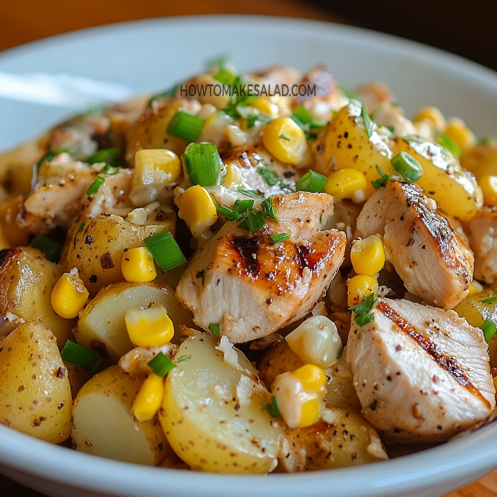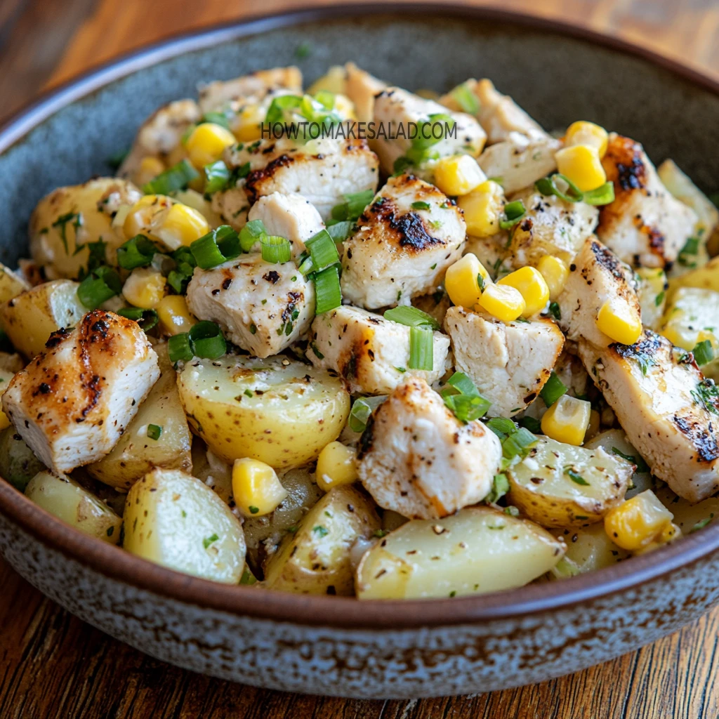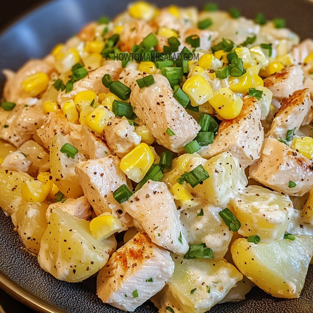 يتم سلق البطاطس حتى النضج ثم يضاف إليها الدجاج والمايونيز والذرة وخلط جميع المكونات