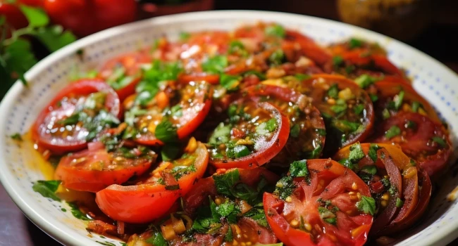 تعُد سلطة الطماطم المتبلة واحدة من أكثر أنواع السلطات شهرة وانتشارًا في المطابخ العربية، بفضل نكهتها القوية المنعشة وسهولة تحضيرها، غالبًا ما تُقدَّم كمقبل خفيف إلى جانب الأكلات الدسمة والأطباق الشرقية، حيث تساعد على توازن النكهات وتنعش الحواس، تتميز هذه السلطة بمزيج بسيط من التوابل والطماطم الطازجة، ما يجعلها خيارًا مثاليًا لعشاق النكهات الحادة والوجبات السريعة الصحية.