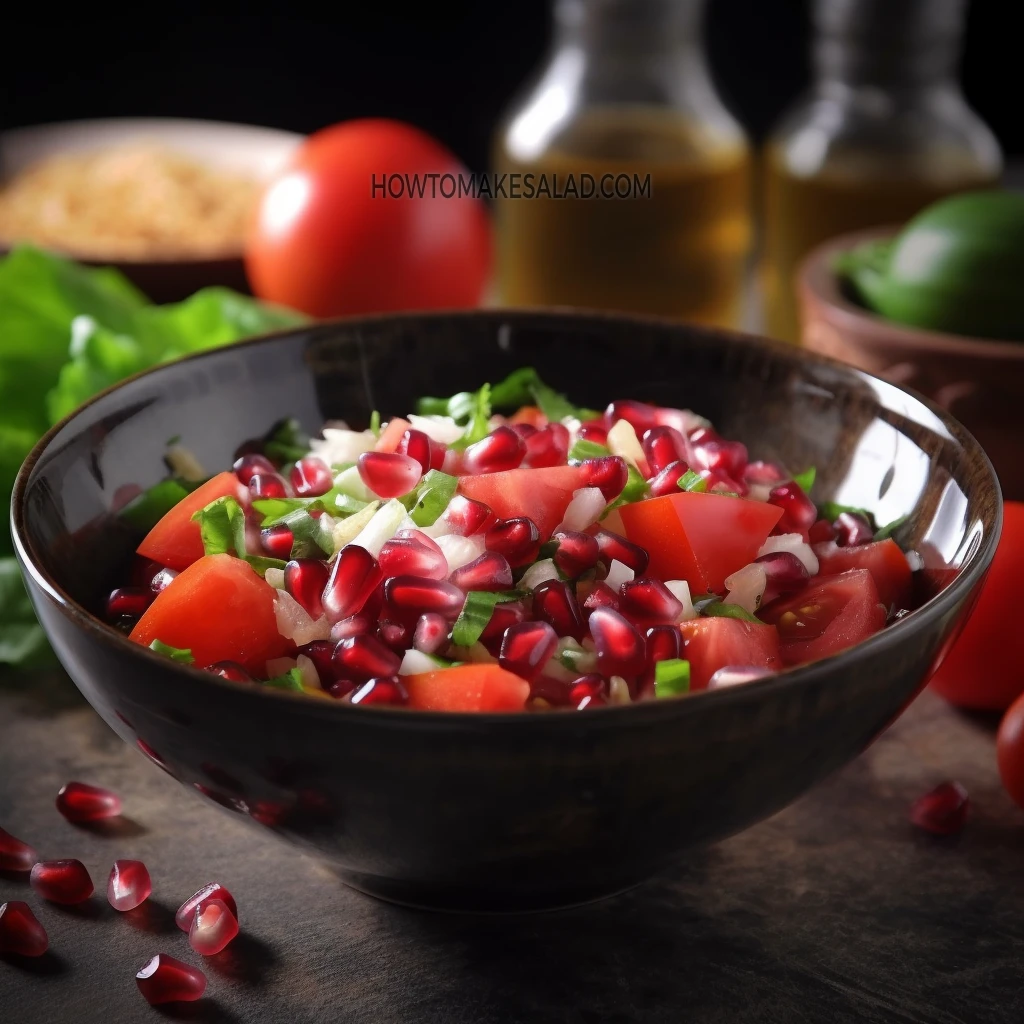 تعتبر "سلطة الطماطم بالرمان" من أشهى السلطات التي تصلح لكافة الاوقات والأذواق نظراً لمكوناتها الصحية والمتناسقة مع معظم الأكلات أو حتى الوصفات الصحية نظراً لفوائد مكوناتها العديدة وقلة السعرات الحرارية بها.