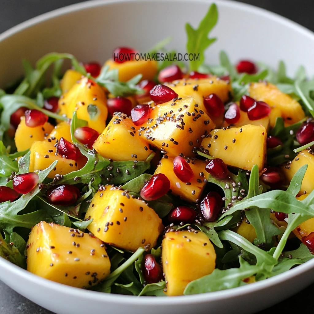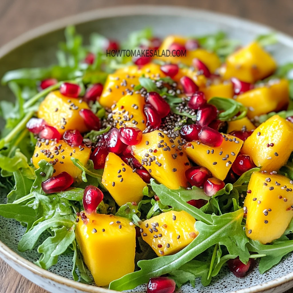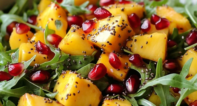 تحتوي "سلطة المانجو والرمان" على مجموعة من أهم الفواكه والخضراوات التي تصنف كـ دواء وعلاج طبيعي للإكتأب والضغوط النفسية والعصبية وأيضاً لها فوائد هامة لتحسين صحة وحيوية الجسم وتحسين الأداء البدني والعضلي.